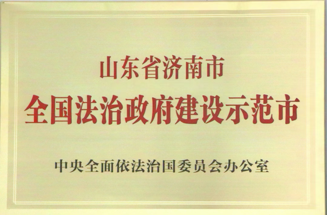 会上,市委书记刘强作题为《深入践行习近平法治思想 扎实推进法治济南建设》的交流发言。会议为第三批全国法治政府建设示范市和项目授牌,市委常委、政法委书记、市委依法治市办主任李国祥代表济南领取“全国法治政府建设示范市”荣誉牌。